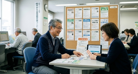 1. ハローワーク「生涯現役支援窓口」:シニア専門の相談員がいます。