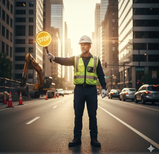 あなたの誘導一つで、現場で働く人の命が守られ、通行するドライバーが事故を避けられ、歩行者が安心して日常を送ることができます。