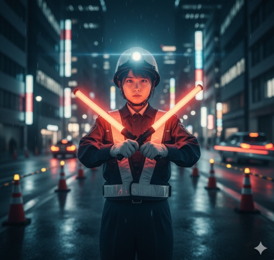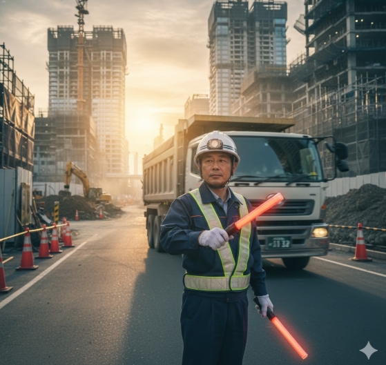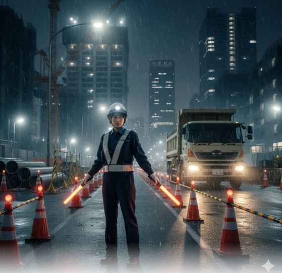 - 炎天下や極寒、雨天の中で長時間立ち続ける体力と精神力が必要です。特に夏の現場では、熱中症予防のための自己管理も重要な業務の一部となります。